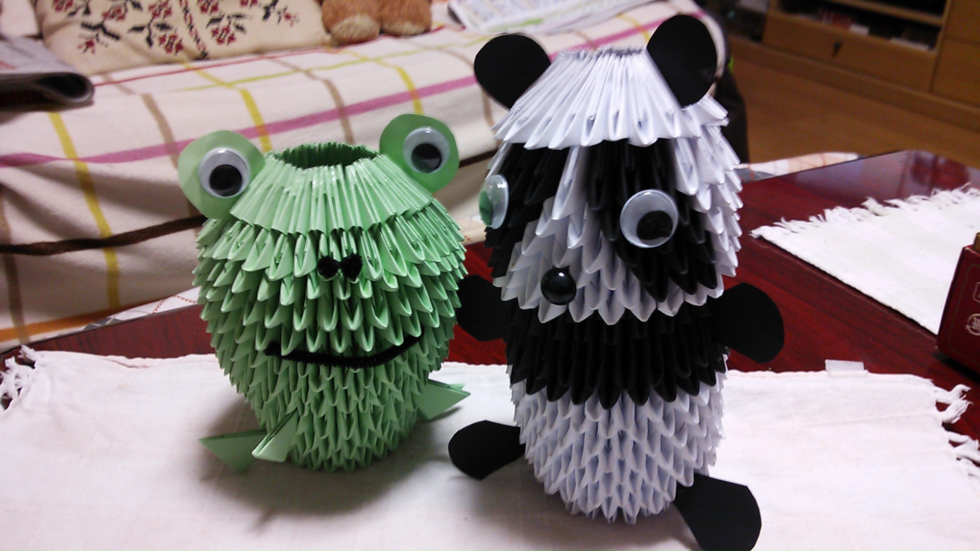 なんかよくわからないんだけれど、三角形をいっぱい作ってつくる立体的な折り紙。